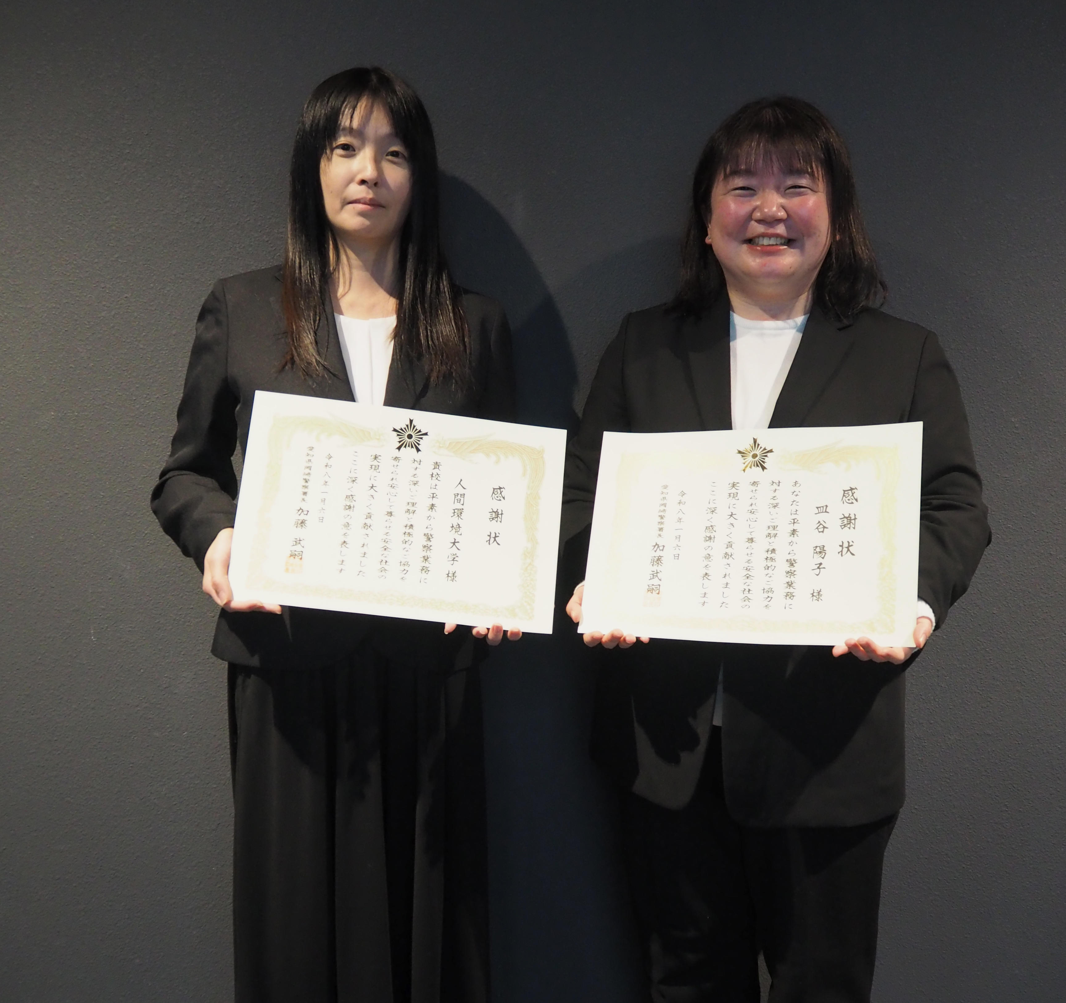 - 【犯罪心理学科】愛知県岡崎警察署から感謝状が贈呈されました