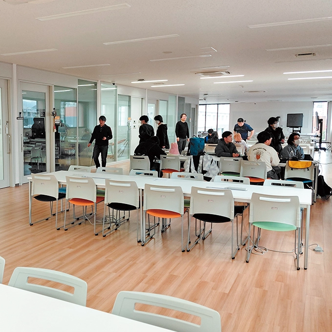 教員研究室の前には、用途に応じて自由にレイアウトや使い方を変えられる「ゼミスタジオ」を設けています。