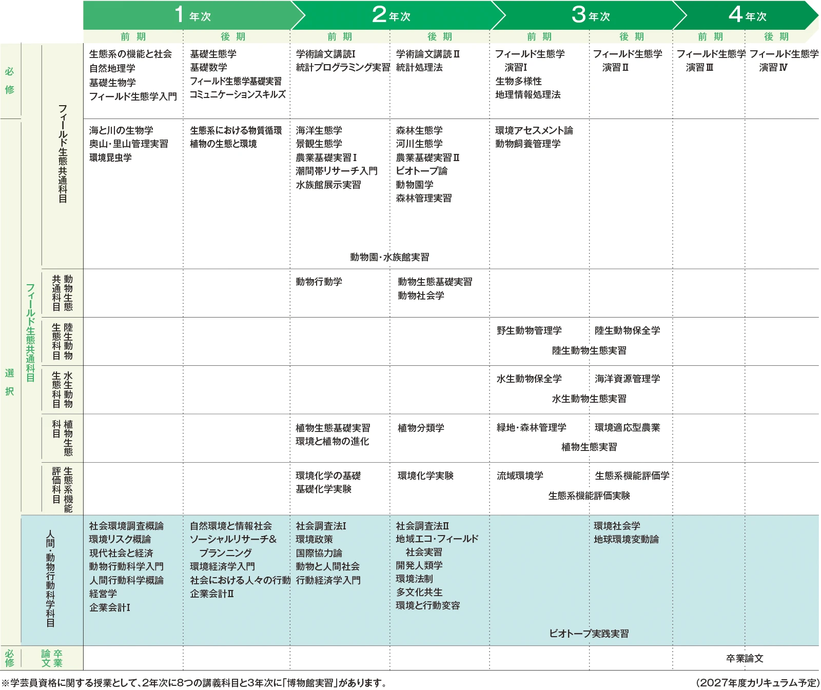 フィールド生態学科カリキュラム・授業