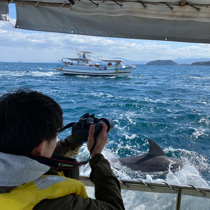 フィールド生態学科の教員の中には、遠方に自らの調査フィールドを持ち、そのフィールドでしかできない調査を実施しているものもいます。こうした特別なフィールドに同行し、研究者が見ている景色を見てみよう!、とういのが「フィールドリサーチャー育成プログラム」です。これまでに、天草のイルカ、佐渡のトキ、宮古島の昆虫などの調査に学生が同行してきました。みなさんも、研究者が見ている世界をのぞいてみませんか?