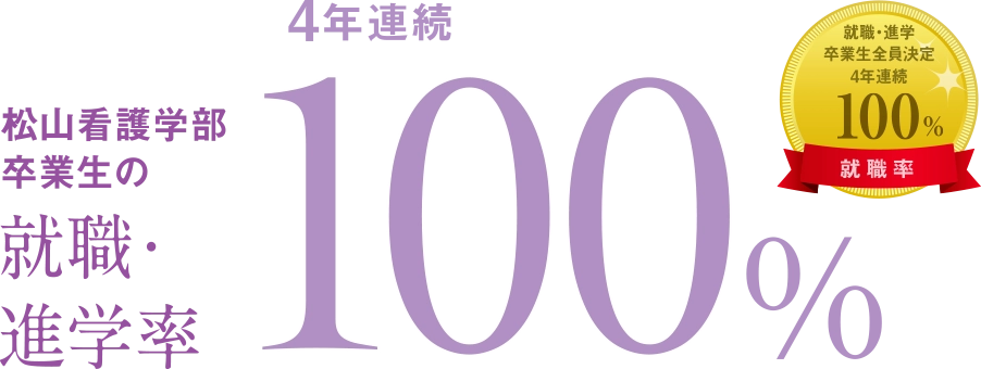 松山看護学部では、1年次前期より臨地実習を組み入れています。臨地実習で教員1人が担当する学生数は4〜5人と少人数なので、それぞれの学修進度に合わせた指導を行うことができ、学生が安心して実習に臨めるよう配慮しています。