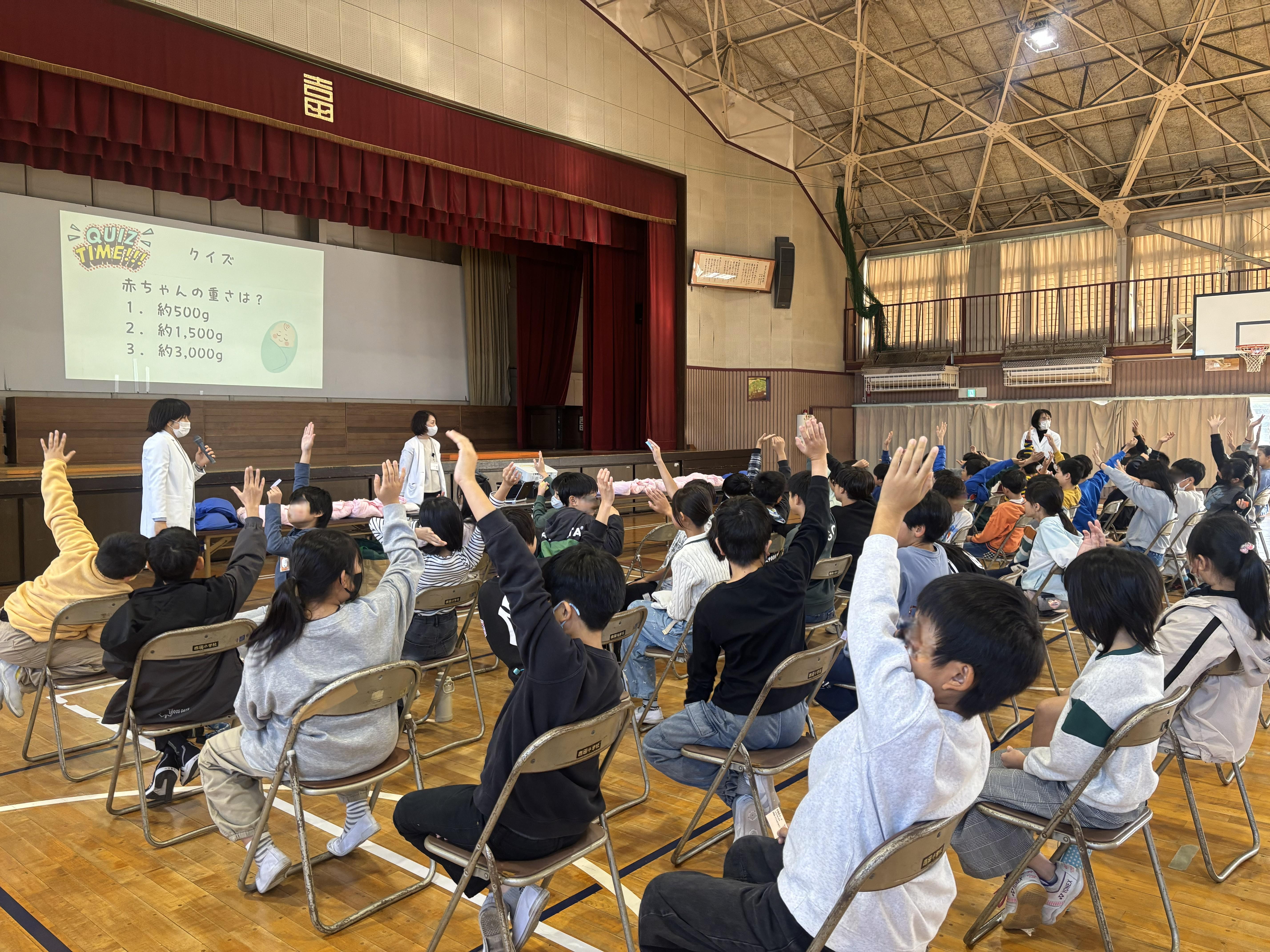 授業後の振り返りでは、「赤ちゃんって本当に小さい」「お母さんってすごいと思った」「自分のいのちも大事にしたい」という感想が多く寄せられ、いのちへの理解が深まった様子がうかがえました。