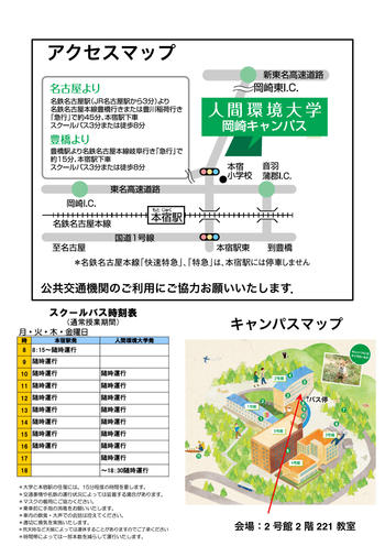 会場: 人間環境大学岡崎キャンパス2号館2階221教室