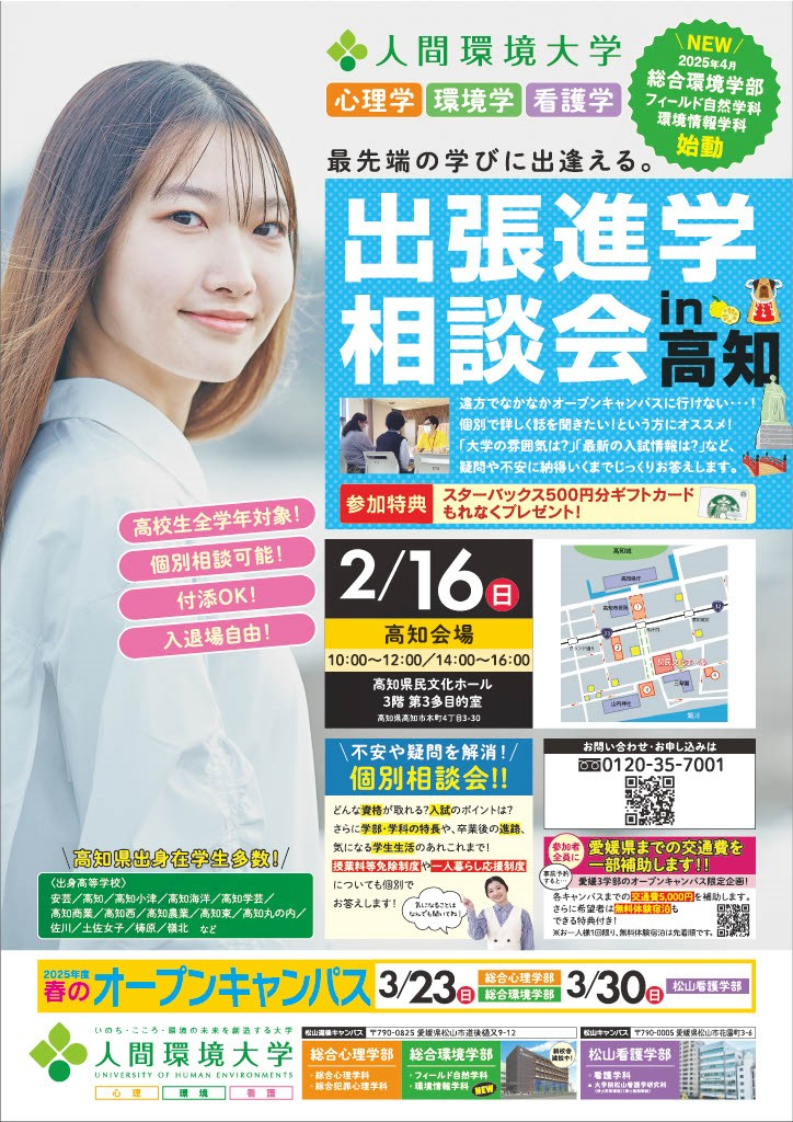 特典その2. 愛媛県の3学部[松山看護学部/総合心理学部/総合心理学部]のオープンキャンパスに