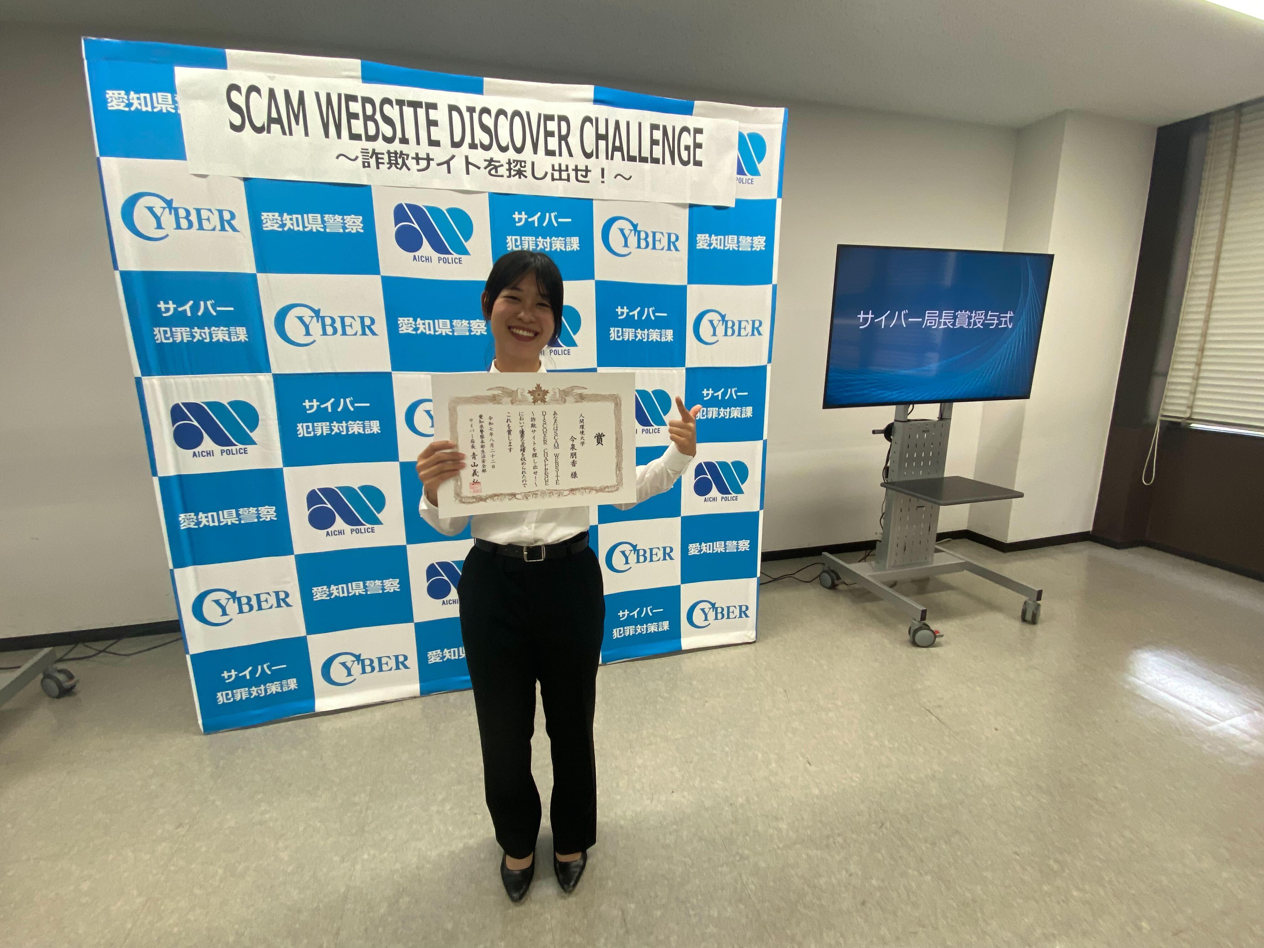 【犯罪心理学科】本学の学生が、愛知県警本部よりサイバー局長賞を受賞しました