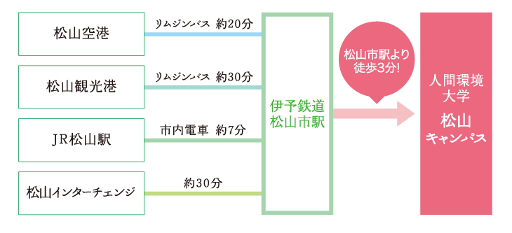 人間環境大学 松山キャンパス 〒790-0005 愛媛県松山市花園町3-6 TEL 089-909-7001(代表)