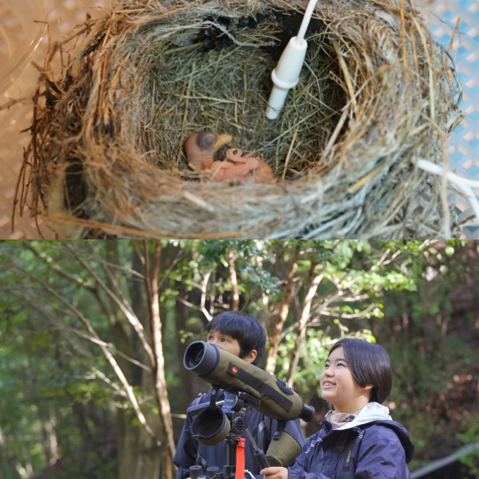 全国で200羽程度しか確認されていない絶滅危惧種「アカモズ」の保全活動を中心に、鳥類標識調査(バンディング)や学会参加、自然イベントの運営など多彩な活動を行っています。フィールド生態学科の学生を中心に、保全や研究に熱意を持った約60名の部員が在籍し、日々活躍しています。ぜひ、一緒にフィールドで活動しましょう!