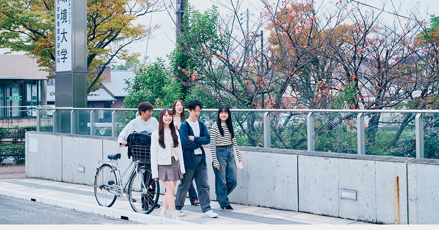 看護学部のある大府キャンパスは、健康長寿の一大拠点を目指すウェルネスバレー構想をもち、「健康都市宣言」を掲げる大府市と連携し、大府駅至近に開設。名古屋駅からJRで14分の交通至便な立地にもかかわらず、公園なども多い緑豊かな自然に恵まれた環境です。