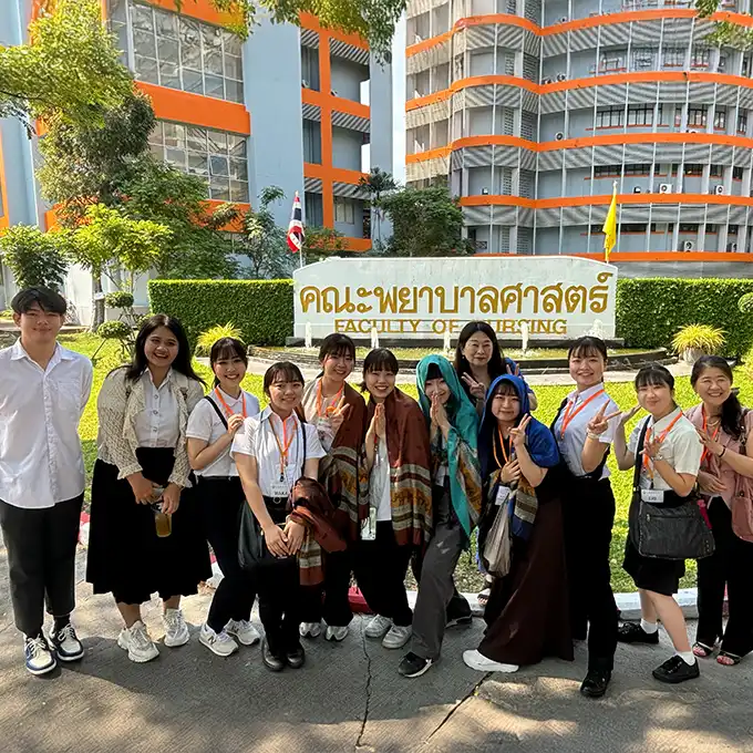 世界に目を向けた看護を学べるのも、本学の魅力!アメリカのコロラド大学、タイのブラパー大学、韓国の釜山カトリック大学と提携し、海外研修で国際的な視野を広げるチャンスがあります。また、タイや韓国からの留学生も本学に訪れ、国内にいながら異文化交流を楽しめる機会も充実。世界とつながる学びが、あなたの未来を大きく広げます!