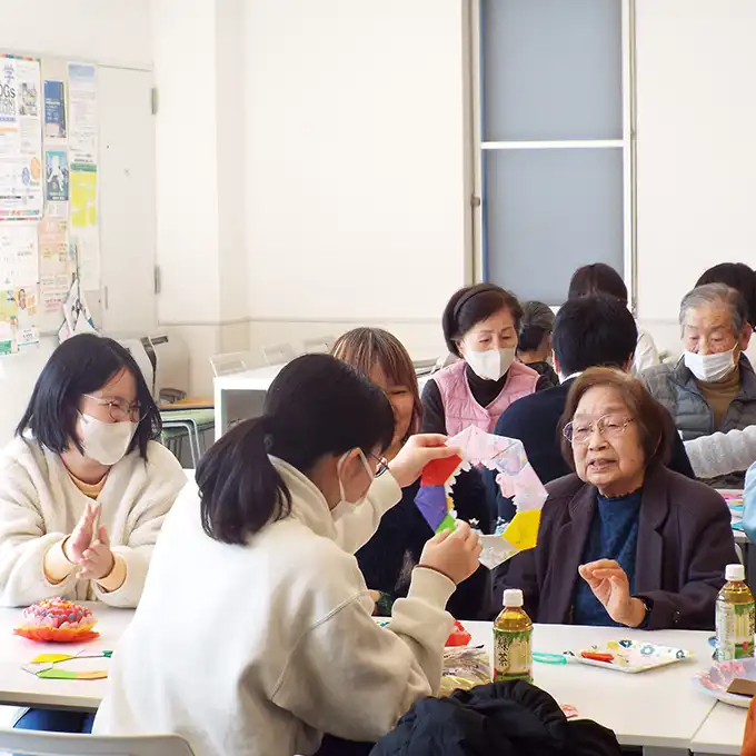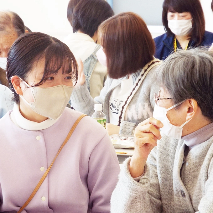 本学は、認知症の方やご家族、地域の方々が気軽に集える「認知症カフェ(JINKANカフェ)」を学生と共に運営しています。対話やふれあいを通して、人に寄り添う看護の大切さを実感できる貴重な学びの場です。また、愛知県から「認知症パートナー大学」に認定され、地域と連携しながら認知症理解を深める取り組みも推進中。人と人とのつながりを大切にする学びが、ここにはあります。