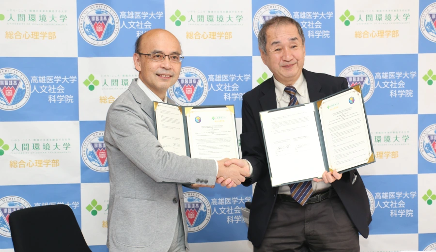 総合心理学部では、台湾の高雄医学大学と短期交換留学の協定を結んでいます。毎年2月中旬から1ヶ月間、本学から台湾に5名の学生が留学に行きます。そして、6月下旬からの1ヶ月間、台湾から本学に5名の留学生がやってきます。台湾での経験を通じて、多くの学生が大きく成長し、自信をつけて帰国しています。お迎えするのも一大イベントで、実行委員会を結成し、学部一丸となって台湾の学生を迎え入れます。毎年最後には、別れを惜しむ感動的な場面が見られます。