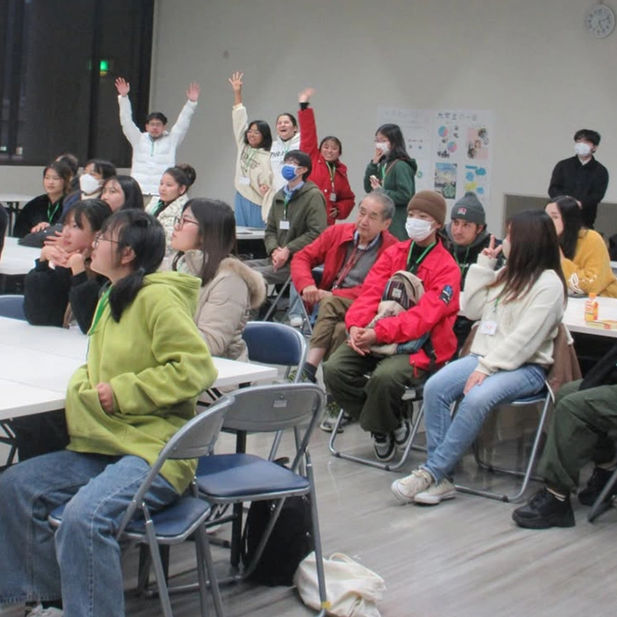 法人の専門学校に在籍する留学生を迎え、12月に2回、異文化交流会を開催しています。日本語のかるたやクイズ、ジェスチャーゲームなど、学生が企画した多彩なプログラムを通じて、互いの文化を楽しく学び合います。アジア圏出身の参加者が多く、出身国はさまざまですが、会場には笑い声が溢れます。
