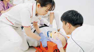 自然災害の種類について理解を深め、防災意識の向上およびその対策を考察。また、災害サイクルにおける被災者の健康や生活ニーズに応じた看護職の果たすべき役割を学び、災害時におけるトリアージ、こころのケアについて学内模擬演習により学びます。