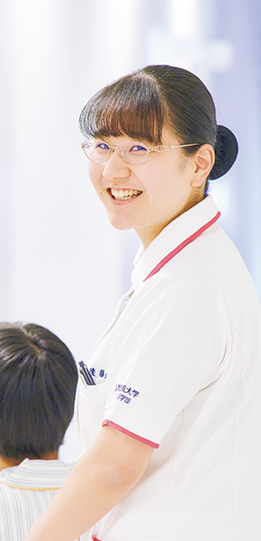 現在、NICUや産婦人科で看護師として経験を積み、認定看護師の資格を取得することを目指しています。私の母の友人が看護師をしていて、看護師の仕事ややりがいを聞いていくうちに、看護師という職業に興味を持ち、憧れを抱き、小学校高学年の頃から看護師になりたいと思っていました。大学では、看護師に必要な知識・技術を学び、臨地実習に活かし、毎日たくさんのことを学んでいます。特に演習がある領域は自分で実際に行うことができるため、やりがいを感じます。特に母性領域に興味があるため、講義や演習では夢中になって没頭しています。先生もただ優しいだけではなく、学生に向き合う真剣な姿勢や理解しやすい授業から、勉強を頑張ろうとスイッチが入るし分からないことは何度でも丁寧に理解できるようになるまで寄り添ってくれるので、人間環境大学に入学してよかったと感じています。
