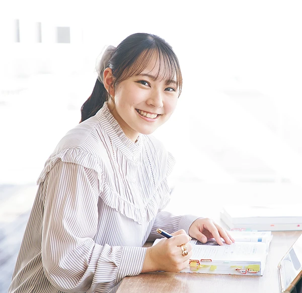 本学では看護師と保健師のダブルライセンス取得を目指せるため、資格取得に向かって日々頑張っている最中です。将来の夢が明確になった決め手は、中学生の時の職場体験です。病院に訪れた際に、出会った看護師さんが、患者さんの一番近くで寄り添い、どんなときでも笑顔で接しているを見て、私もこうなりたいと強く思いました。そして高校生になり、人間環境大学に通っている先輩から「良い所だよ」と教えていただき、進学を決めました。入学してみると、授業の中で国試に出やすいところや過去問を解いていくなど、1年生からより実践的に国家試験対策をしっかりサポートしてくれていて、心強いです。また国際看護など、この大学ならではの学びの環境が整っているので、将来の選択肢が広がります。勉強とバイトも両立でき、充実した生活を送っています。