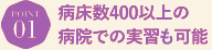 看護の学びに欠かすことのできない臨地実習。本学では実習体制が整備されている病床400床以上の規模の病院での実習も可能です。