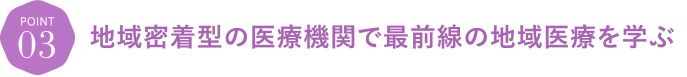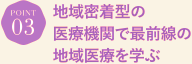 山間部における在宅ケアや、瀬戸内海島しょ部の地域医療を担う巡回診療船「済生丸」の実習で、地域の人々に寄り添う医療の最前線を学びます。