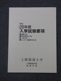 平成28年度入学試験要項(人間環境学部、看護学部)が完成しました。