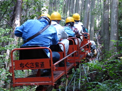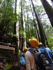 中でも、天然スギ保存林は全国でもめずらしいそうです。保存林までは、モノレールで向かいます。山中では徒歩に比べると格段に速い乗り物です。なぜ、天然スギが残ったのかというはっきりした原因はわからないそうです。しかし、伐採したとしても材を運び出しにくい場所であったため、そのまま伐採されずに残ったのではないかと推察されていました。