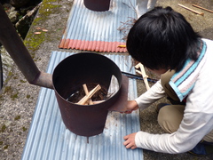 まきを割り、火を付け、野菜を切り、カレーを作り、みんなで食べました。窯でご飯を炊くのは大変!!と思いきや、学生の一人は慣れた様子でおいしいご飯を炊いてくれました!同行した教員も、「今年のご飯の炊き方は上手!」と褒めていました。彼の隠れた特技にみんな驚いていました。