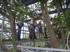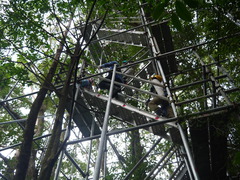 樹冠観測タワーは、アカガシを囲うようにして建設された地上18 mの林冠観測塔です。樹高の高い樹木の林冠部を観察できる機会はなかなかありません。