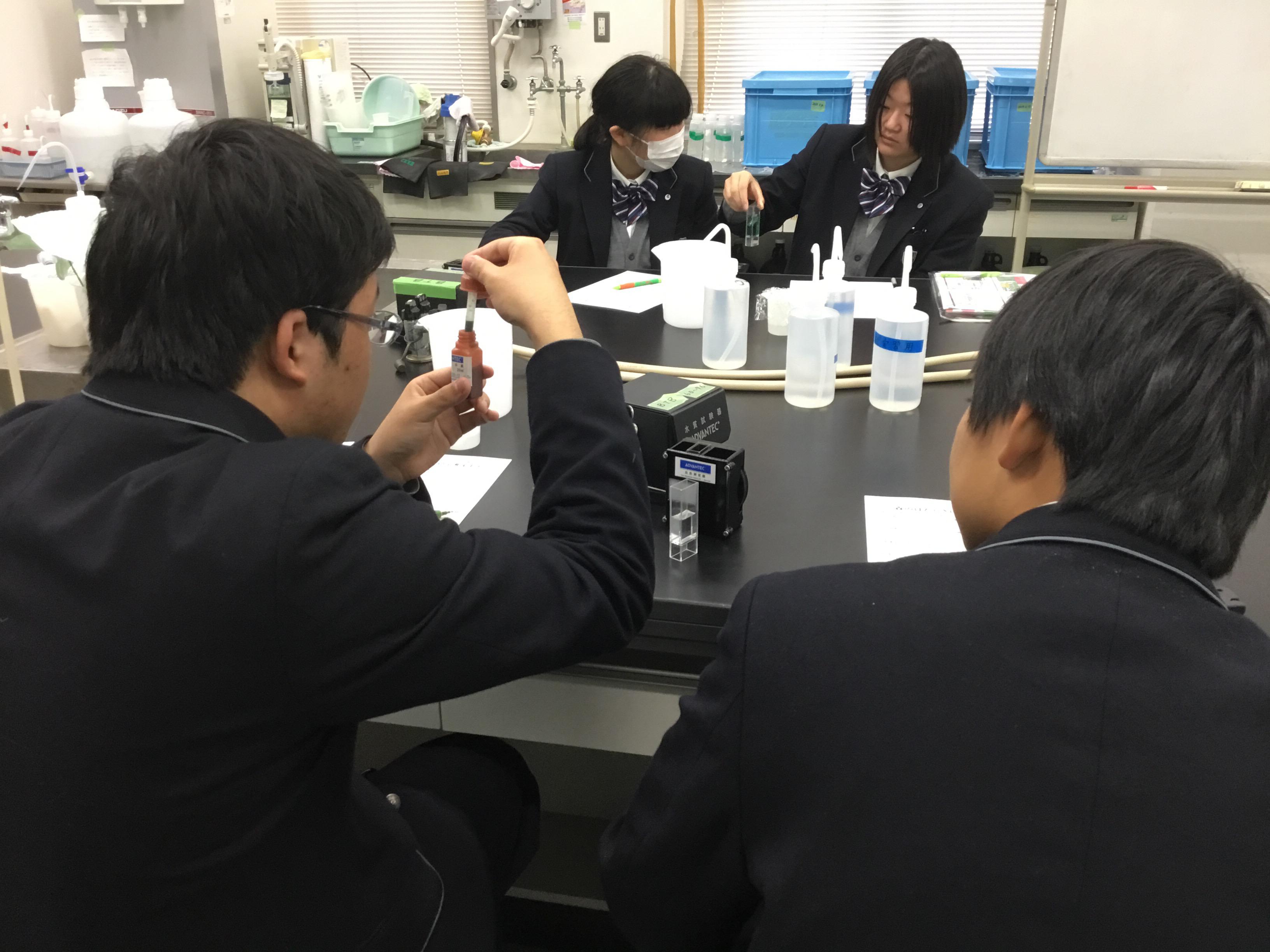環境科学科の講座の一つでは、雨と渓流水の水質分析を行いました。