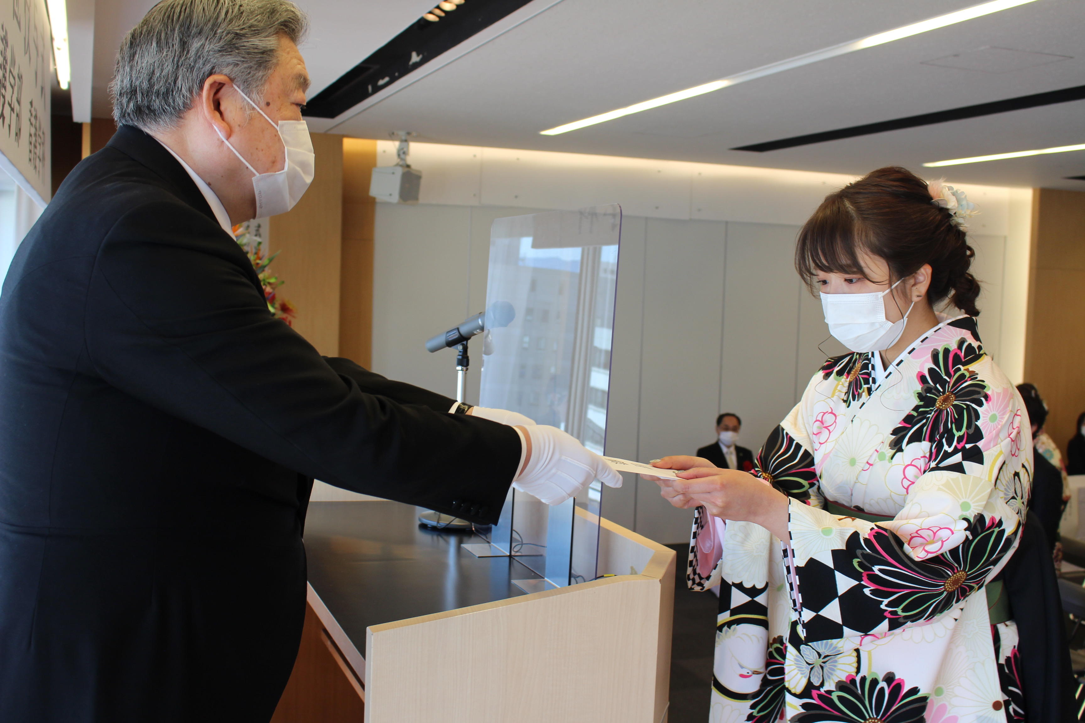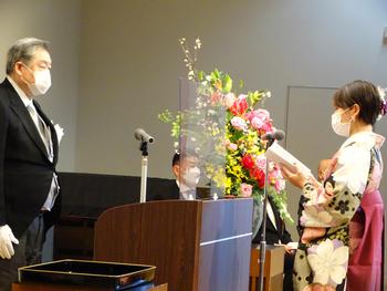 牧山学長へ、4年間の感謝と新たな看護職者として決意を伝える看護学部卒業生