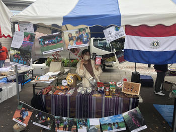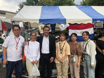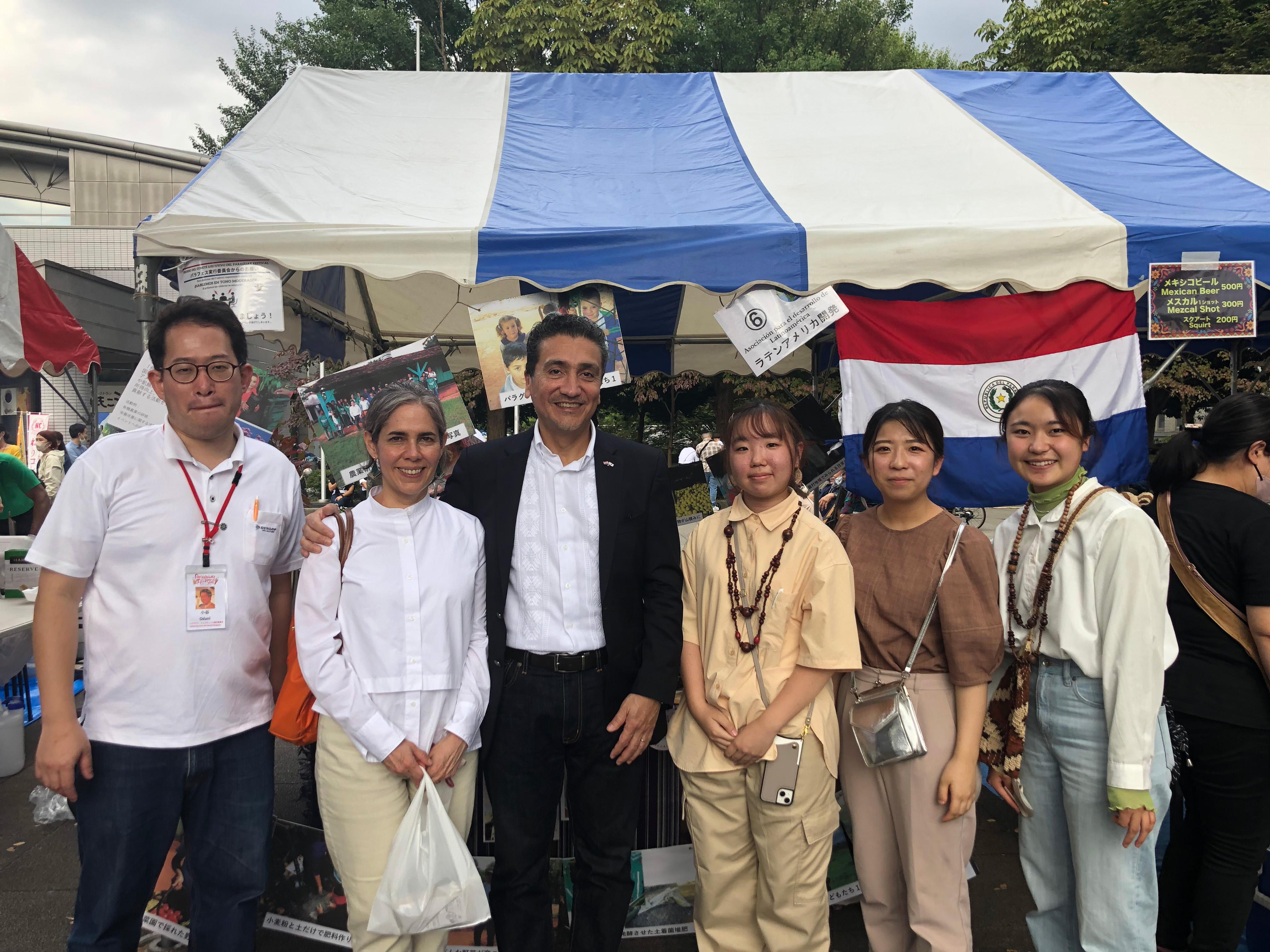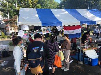 本学の教員が代表を務めるNPO法人日本ラテンアメリカ開発協会のインターンシップ生として、本学の学生が東京で開催された「パラグアイ・フェスティバル」に出店いたしました。民芸品だけでなく、ケーキ屋さんとコラボした「マテ茶カヌレ」も販売し、完売いたしました。今週末(22日・23日)は、栄のオアシス21にて、「ワールド・コラボ・フェスティバル」にも出店いたします。新商品も販売いしますので、是非、お越しください。写真は、フロレンティン駐日パラグアイ大使と本学学生・教員、ならびに、出店したブースの様子です。