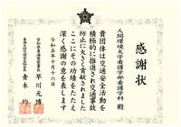 【看護学部】看護学部による大府市内の交通安全推進活動が認められ東海警察署より表彰されました。