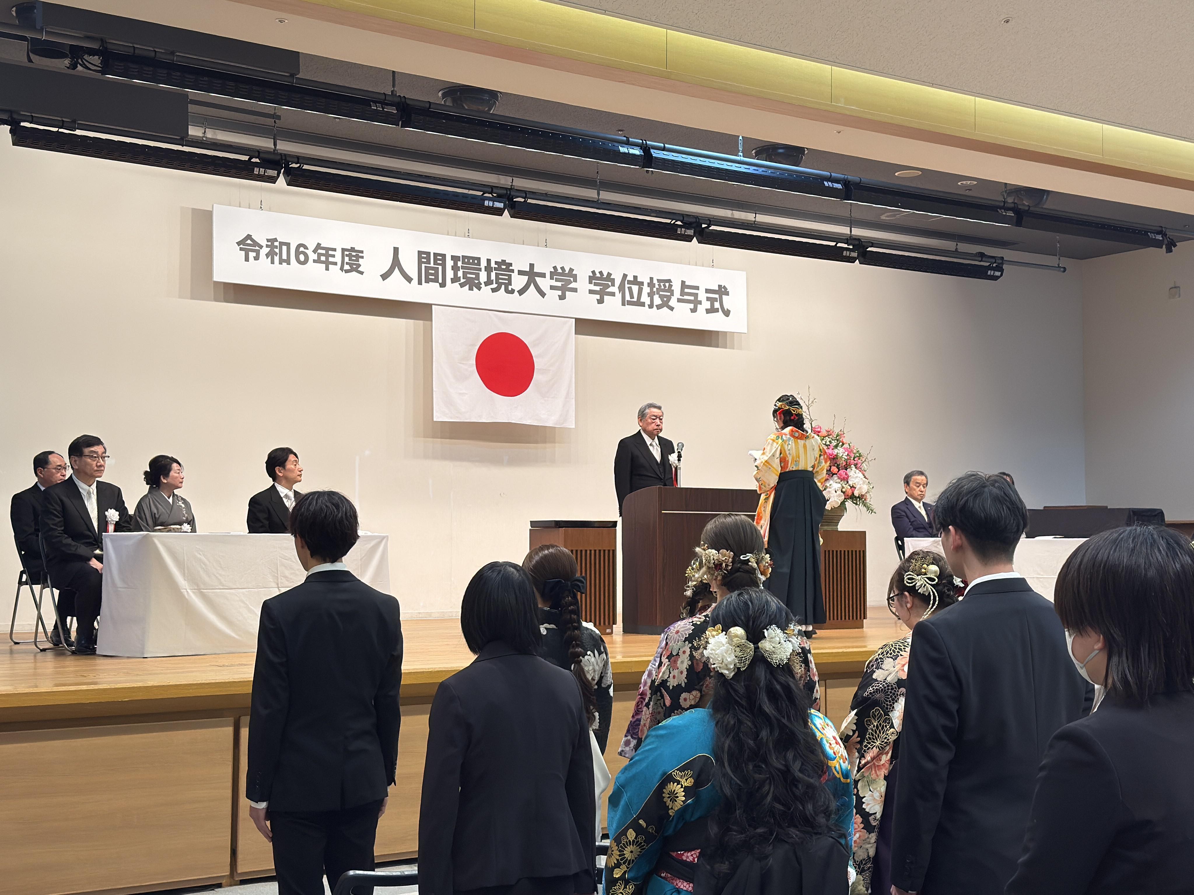 3月14日(金)大府市役所にて令和6年度人間環境大学看護学部の学位授与式が挙行されました。