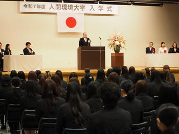 その後、牧山助友学長による式辞、学校法人河原学園の河原成紀理事長からの告辞があり、新入生へ向けて激励の言葉が贈られました。