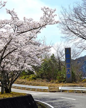 写真は、在学生にとっては毎日の登校時に見慣れた景色かと思います。今年は入学式に合わせたかのように学内の桜が咲き始めました。このように季節ごとにいろいろな顔を見せてくれるキャンパスです。新入生の皆さんには、自然の中からもたくさん本学の魅力を発見していってもらいたいと思います。