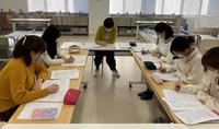 今年度は、5名の学生が受講した選択強化プログラム〔がん看護〕の授業が今年も終了しました。3年生前期の選抜試験を合格した学生と一緒に、4年生の前期から「がん看護援助論」、「がん看護技術論」、「がん看護学外演習」の科目でがん看護について学んできました。授業や学外演習を通して、「看護観が変わった」と目をきらきらさせていた学生もいました。後期開講の「がん看護演習」では、がん患者と家族の難しい事例を通して、意思決定支援や倫理的な問題の解決、患者の全人的苦痛への緩和ケア、家族へのケアなどについて考えました。前期の授業で学んだことに加え、さらに各自が調べた知識や情報を発表し、様々な視点からの看護援助について活発なディスカッションを行いました。写真は、皆で真剣に考えている様子です。それぞれの学生が自分の意見をしっかりと発表し、とても有意義な授業になりました。4年生の授業で、実習や看護研究、就職活動、国家試験の勉強などで大変だったと思いますが、最後まで全員よく頑張ったと思います。