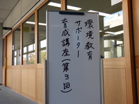 講座では、受講生による「環境」について他者に伝えたいテーマのレポート発表や藤井講師による「環境教育の実践と方法について」の講義、受講者との意見交換などをおこない、環境教育の事例紹介や環境教育サポーターは何をすべきかを問いかけました。