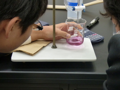 【硬度測定をしています】【試薬を入れると徐々に色が変化してきました!】