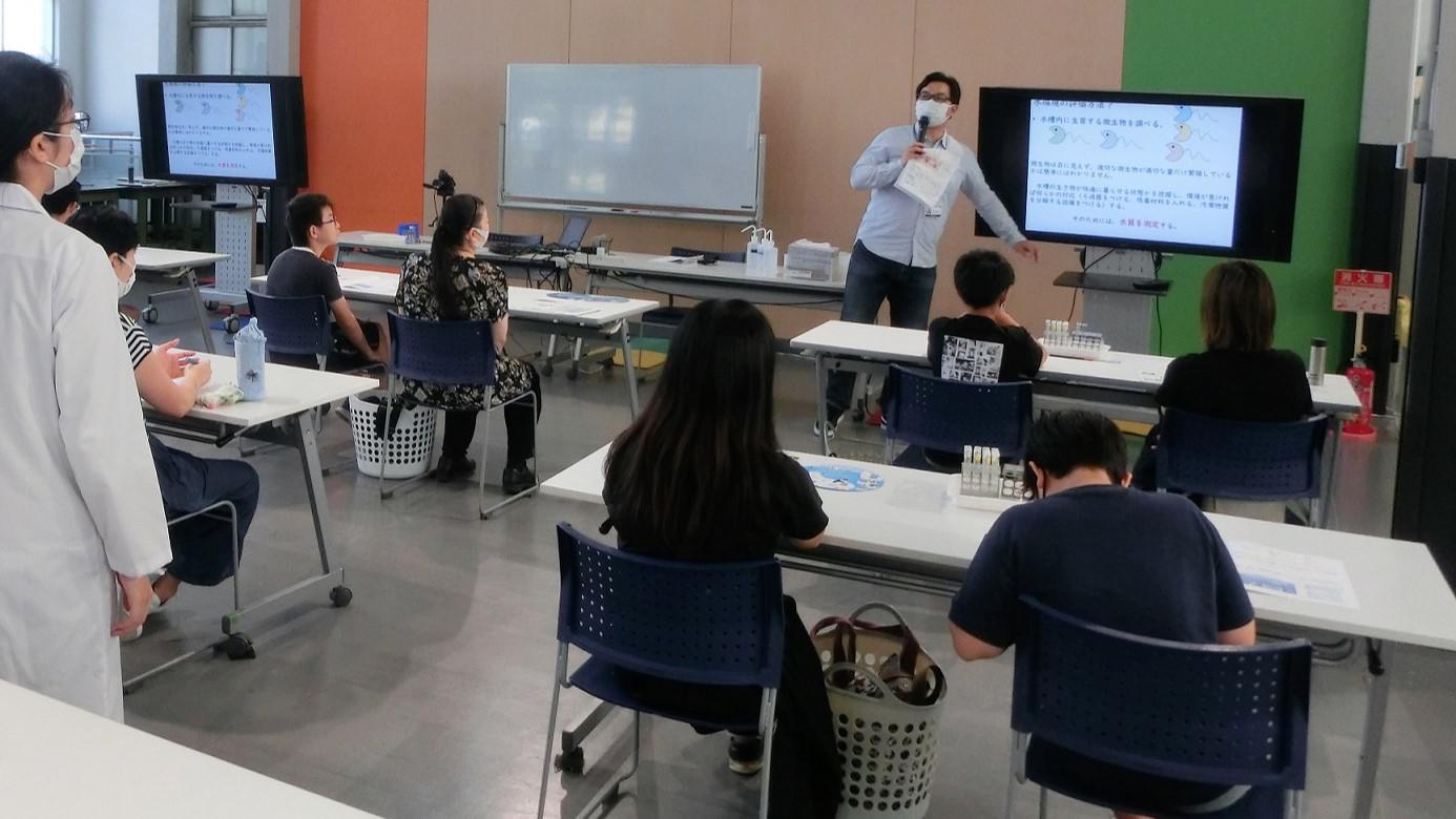 2023年9月9日(土)に「はかせとあそぼ!長さで水質を測定しよう!」と題した水質分析に関するワークショップを実施し、13組の小学生とその保護者の方に水質分析を学んでもらいました。