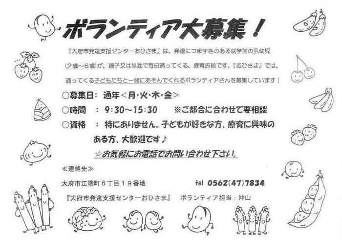 『大府市発達支援センターおひさま』ボランティア大募集!