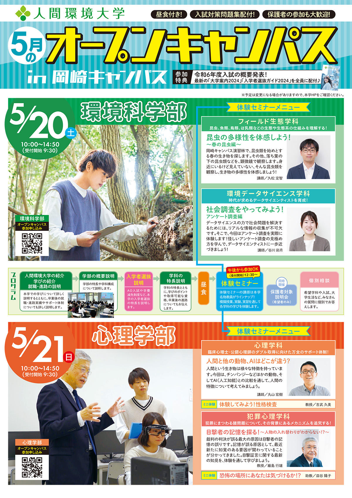 心理学部 参加申込はこちらから 環境科学部 参加申込はこちらから