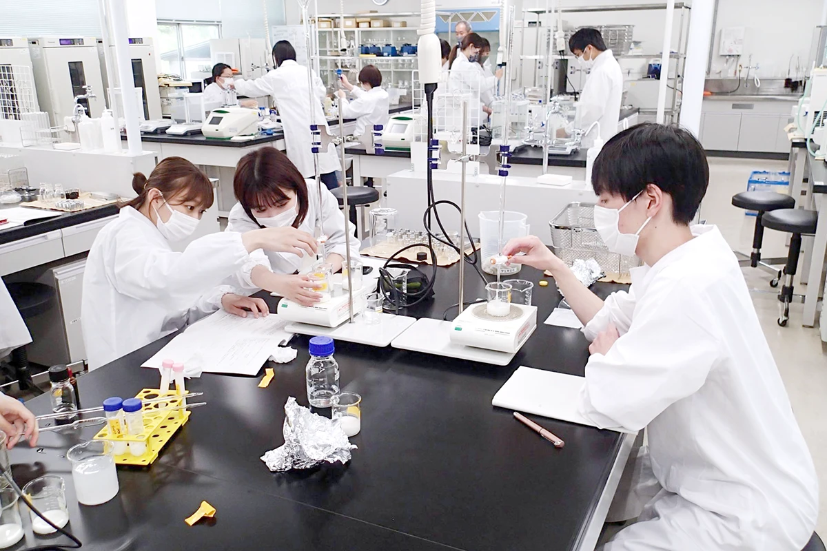 - 昔ながらの方法で大豆から納豆をつくる食品発酵実験などを通じて、微生物のさまざまな利用のための実践的スキルを体得し、持続可能な社会の中での微生物の役割について考えます。