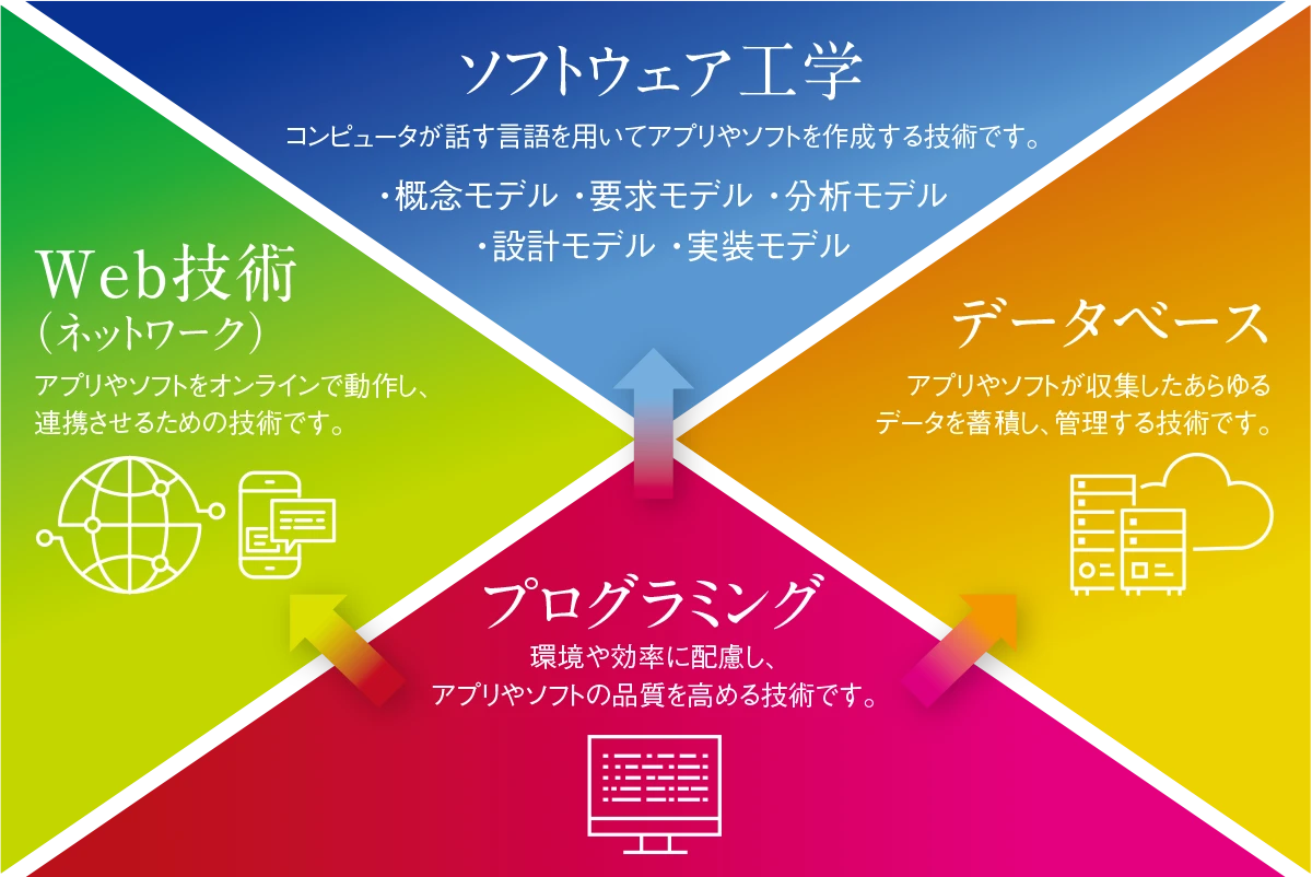 - スマートフォン人気は多種多様なアプリが続々とリリースされる原動力に支えられています。そんなアプリやソフトの世界で競争優位に立つためには、世の中のニーズの変化にいち早く反応し、素早くアプリのカタチに仕上げる必要があります。世界の一流エンジニアが駆使するアプリやソフトの設計技術を学びます。
