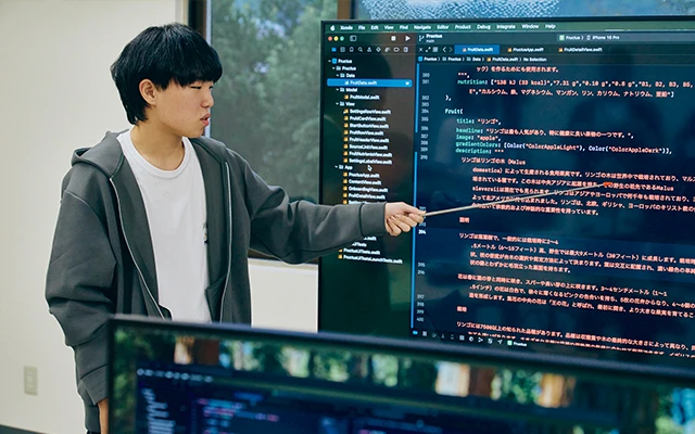 先生の話した内容を単に聴いて覚えるのではなく、実際に駆使し、試しながらアプリを作り、動かす授業が