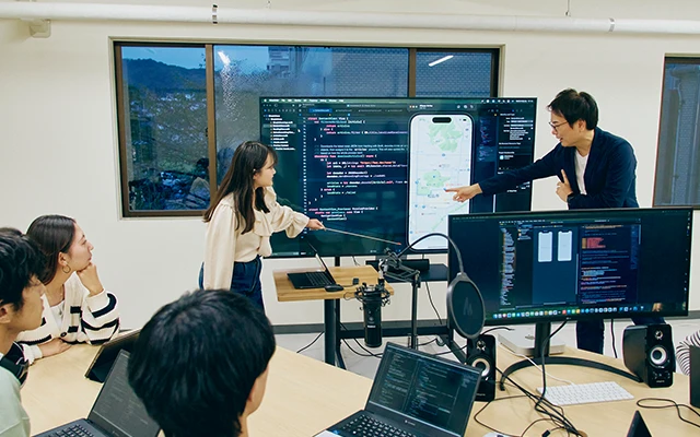 - 最近のChatGPTもそうですが、アプリやソフトの歴史のなかにはその登場によって世の中を一変させた大ヒット作が存在します。そういったアプリやソフトが世に出た背景を研究しながら、成果物として次世代のアプリやソフトの企画立案から制作、リリースまでを行います。