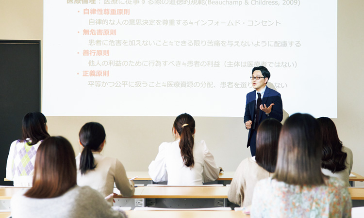 この科目では、各種の精神疾患を引き起こす要因や診断方法のほか、薬物療法から心理社会的支援までを含めた幅広い治療法を学びます。さらに、実際の臨床現場における多職種間や医療機関との連携を想定したチームアプローチについても学びます。この科目での学びが、後の「心理実習」でのより充実した理解に繋がります。
