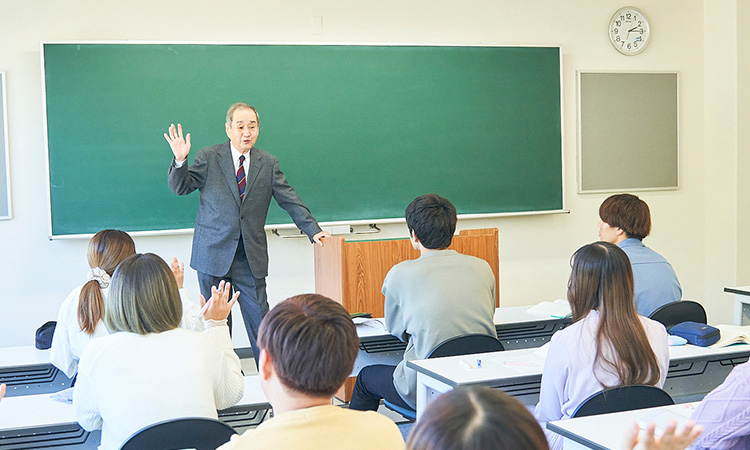 総合心理学部には全部で14名の専任教員がいます。東京大学名誉教授、元日本心理学会理事長、元国際心理学会議(ICP2016)副会長である佐藤隆夫学部長をはじめ、それぞれが心理学の各研究分野の第一線で活躍しています。学生数に対する教員数の多さは近隣でも随一で、教員1人あたり学生5~6人の研究指導を担当します。このため一人一人の興味関心に対して、きめ細かい教育と手厚い心理学の研究指導が可能となります。心理学の中に自分の研究テーマをしっかりと持ち、卒業研究としてまとめることで、社会の中で心理学の知識を活用できるようになります。