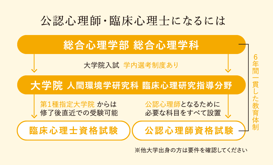 2つの学科のカリキュラムは、心理学で唯一の国家資格である「公認心理師」養成に完全対応しています。